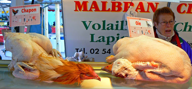 We'll pick up the bird on Christmas Eve in Montrichard, a town about twenty minutes from us. That's where the poultry vendor will be on Christmas Eve. Not in our town. You do have to figure out where the vendors will be on which day, especially when there will be holidays involved.