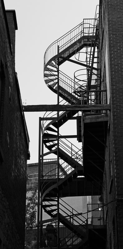 I wasn't able to do a photo essay around the stairs, but I did capture this one image from the alley side of a building just off the rue Saint-Denis. I like the photo better in black and white.